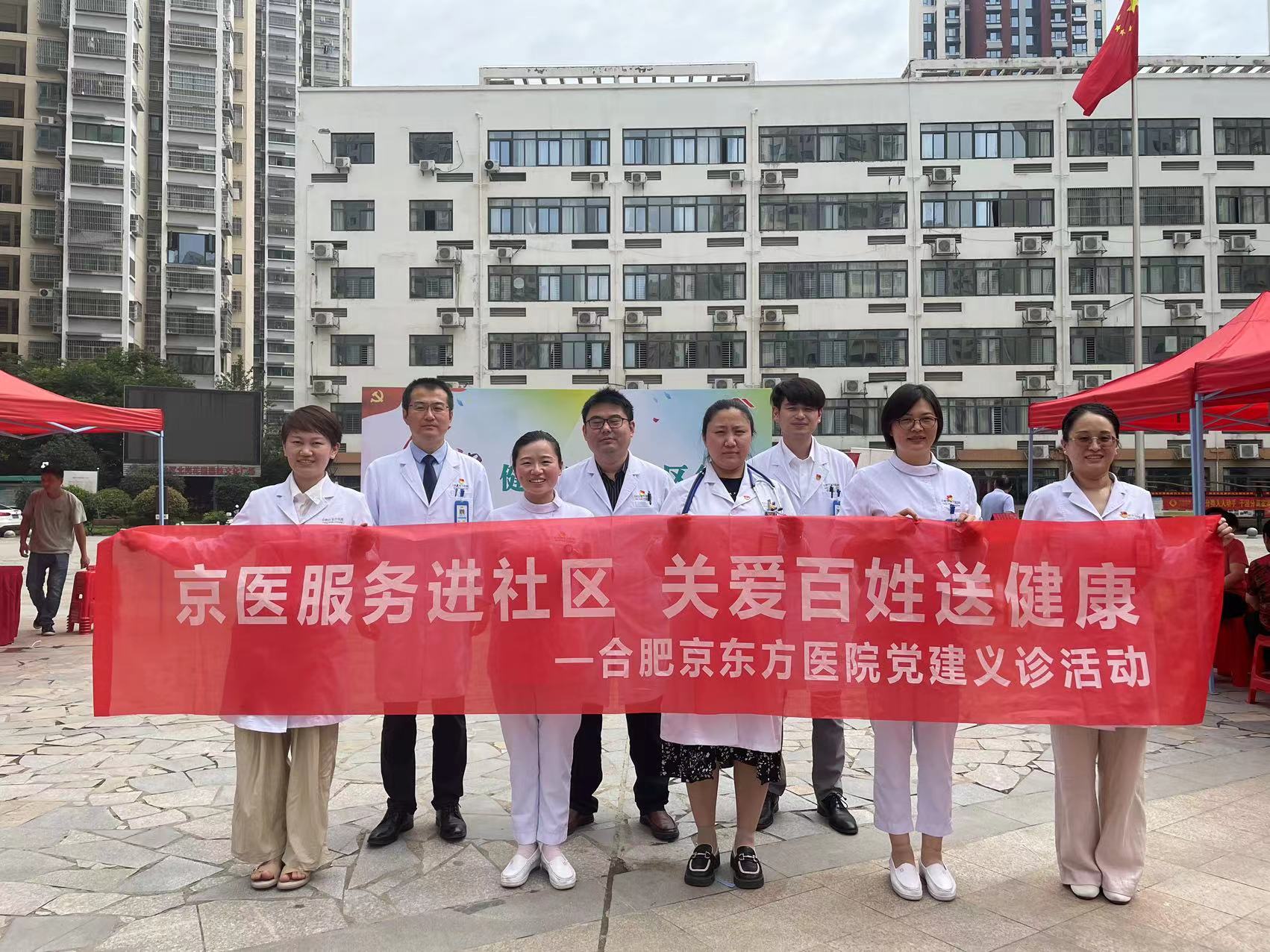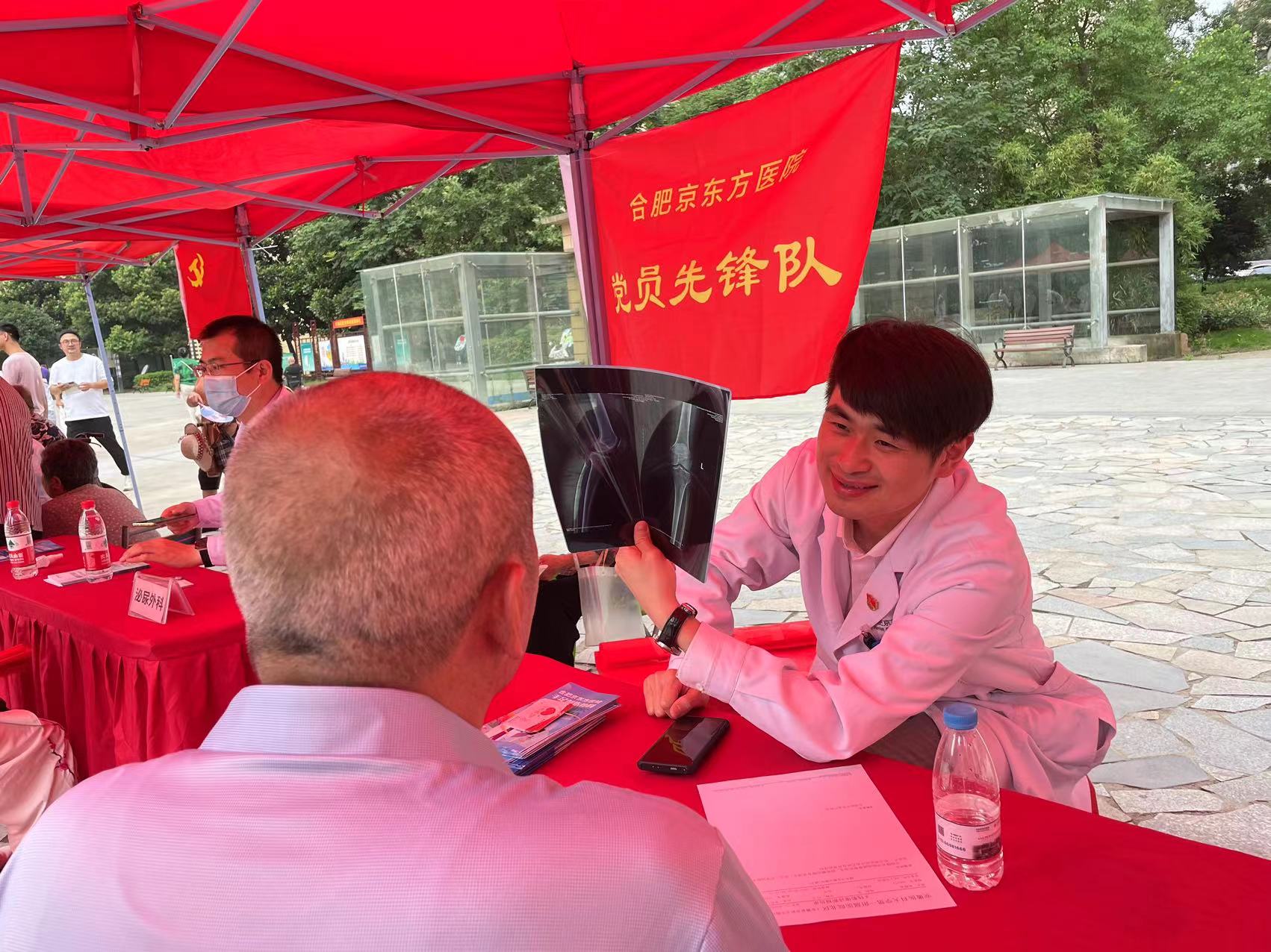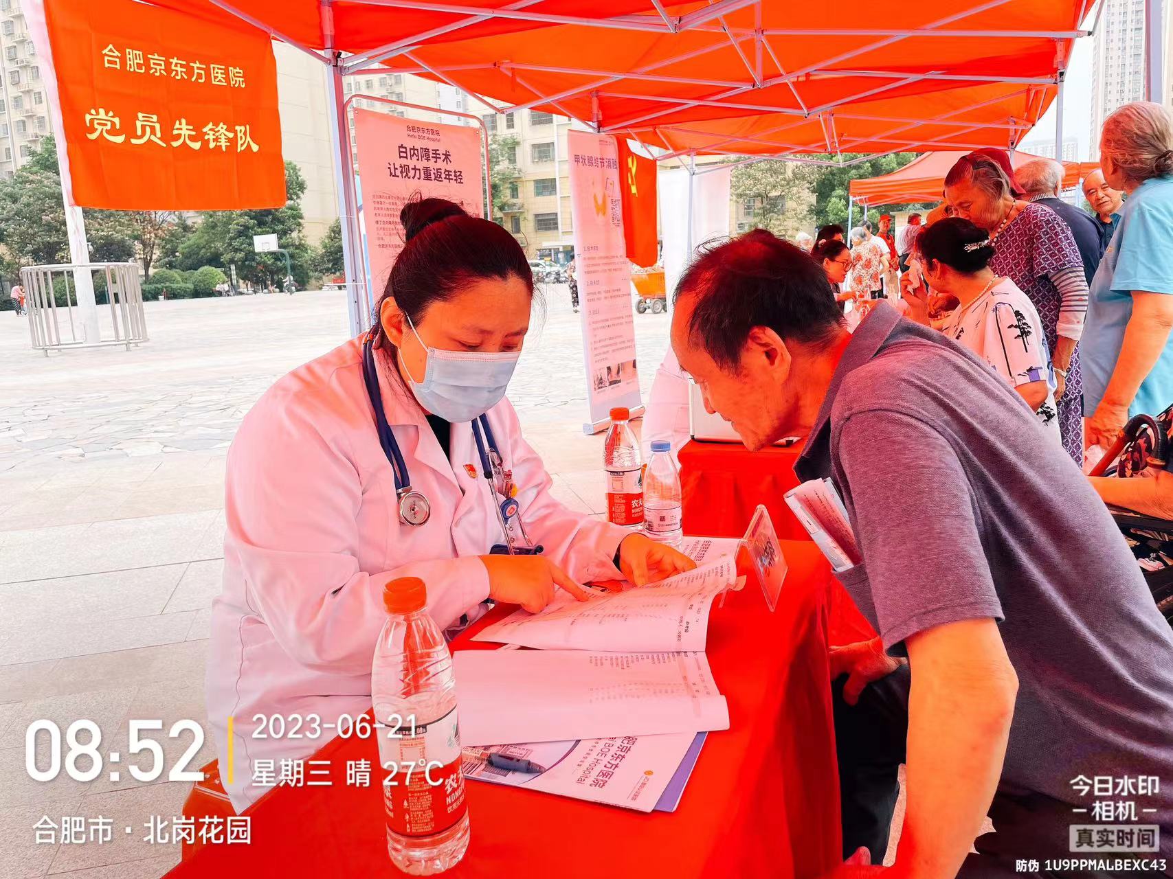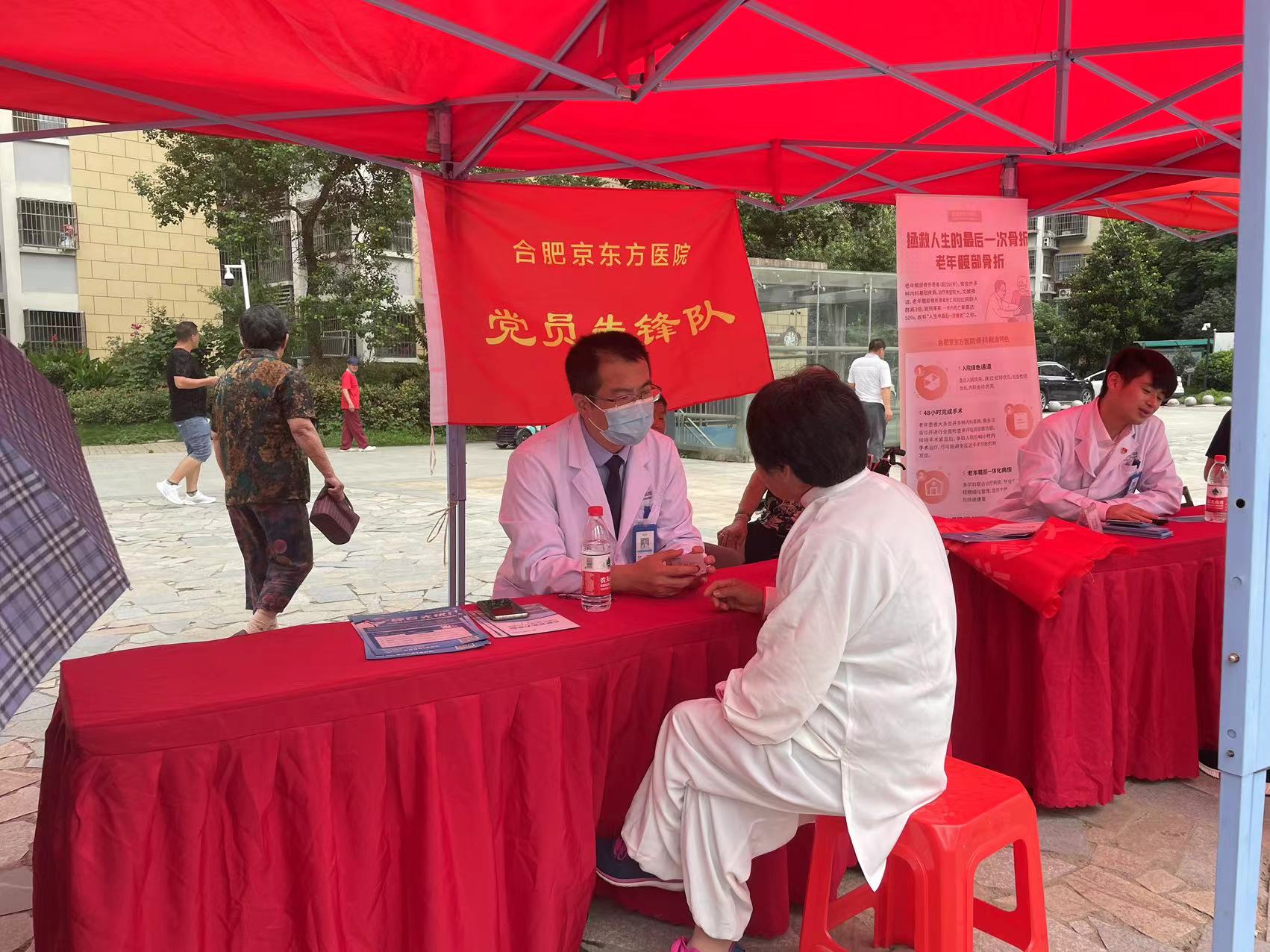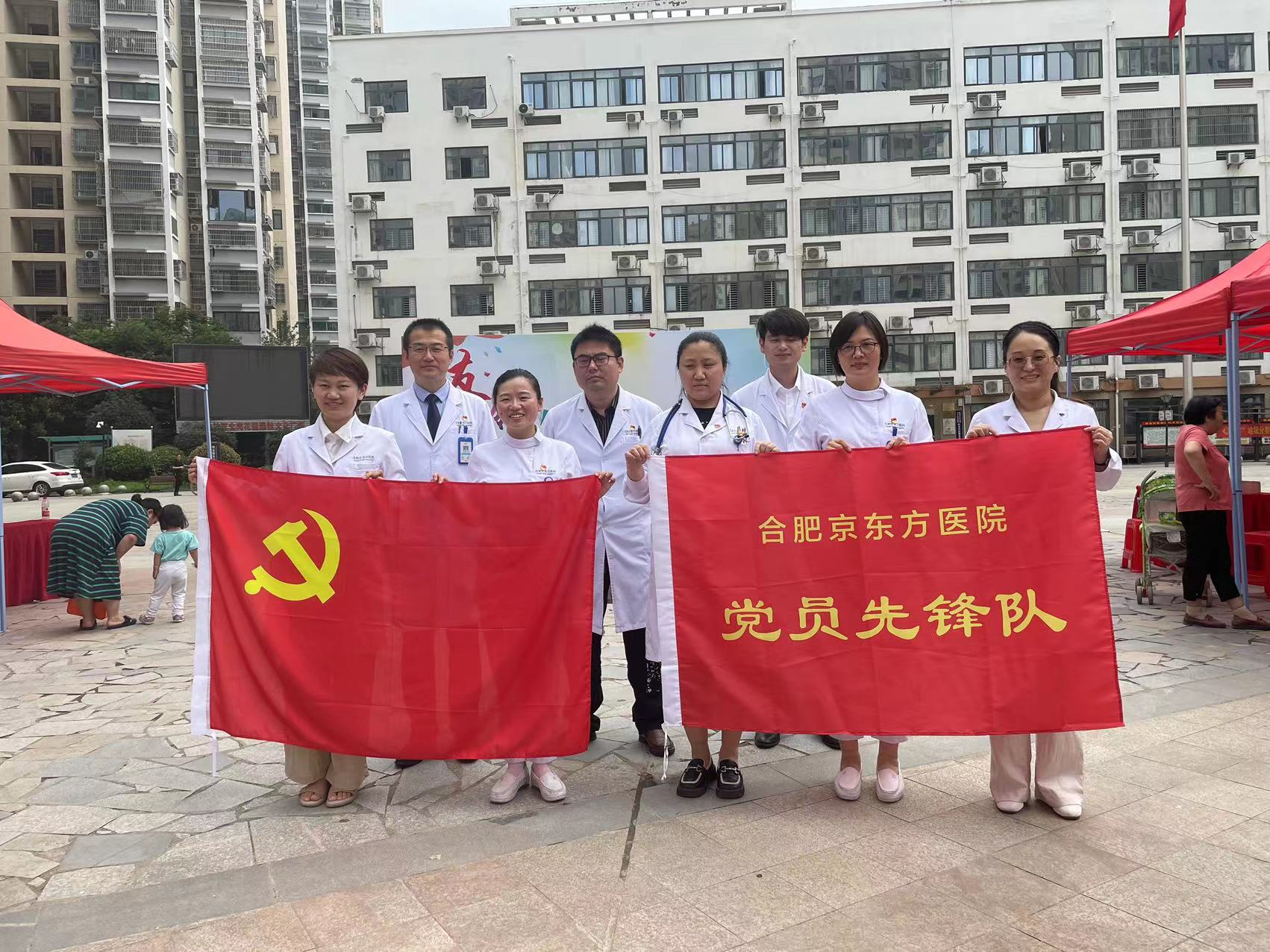 6月21日上午,合肥京东方医院党委与北岗社区联合开展党建联盟公益义诊活动,党员志愿者们顶着烈日,为北岗花园社区的居民送上暖心的服务。